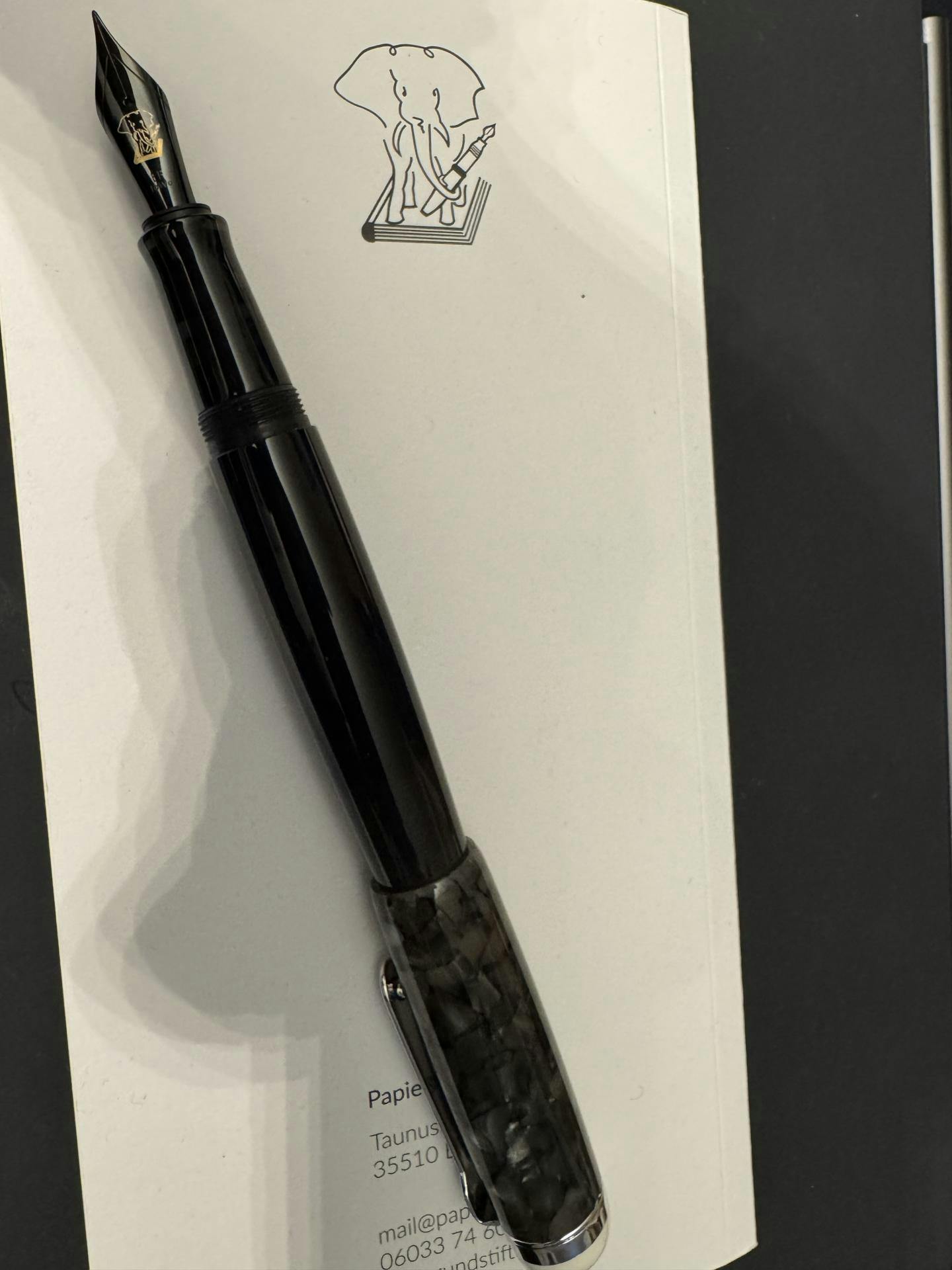Like all Opus 88 models, the fountain pen is an eye dropper: it is filled directly with the included pipette. For transport, the ebonite seal behind the ink guide is screwed shut. The Omar is a particularly large fountain pen and, like the Demonstrator from Opus 88, also has the large steel nibs. It can be delivered in F, M, B and with a 1.5mm stub nib.
