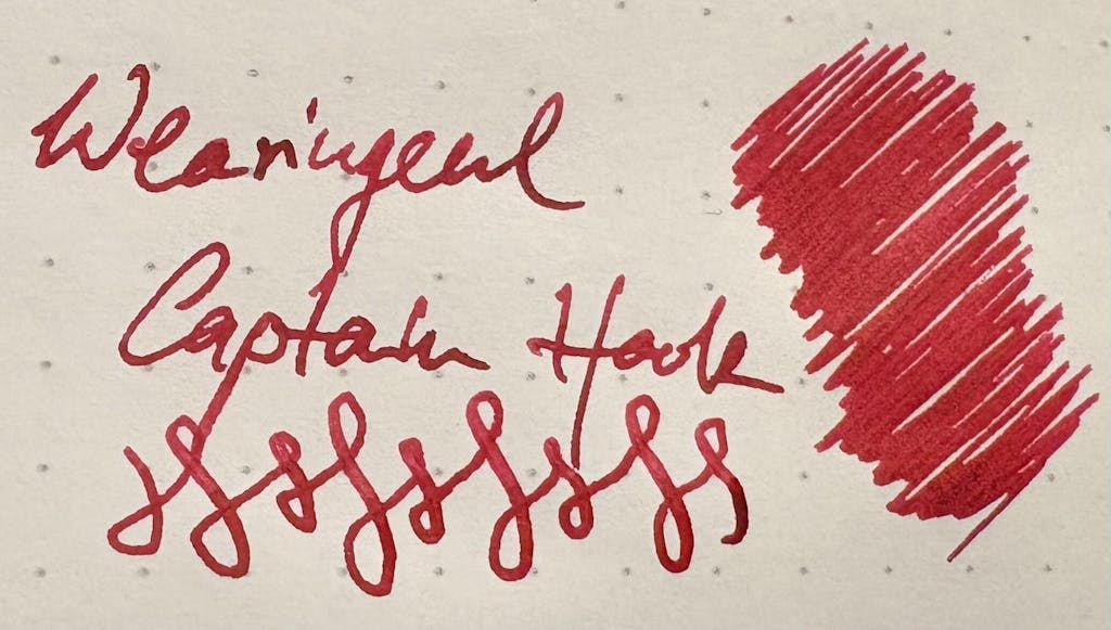 A blood red that recalls the darkness and menace of Captain Hook.