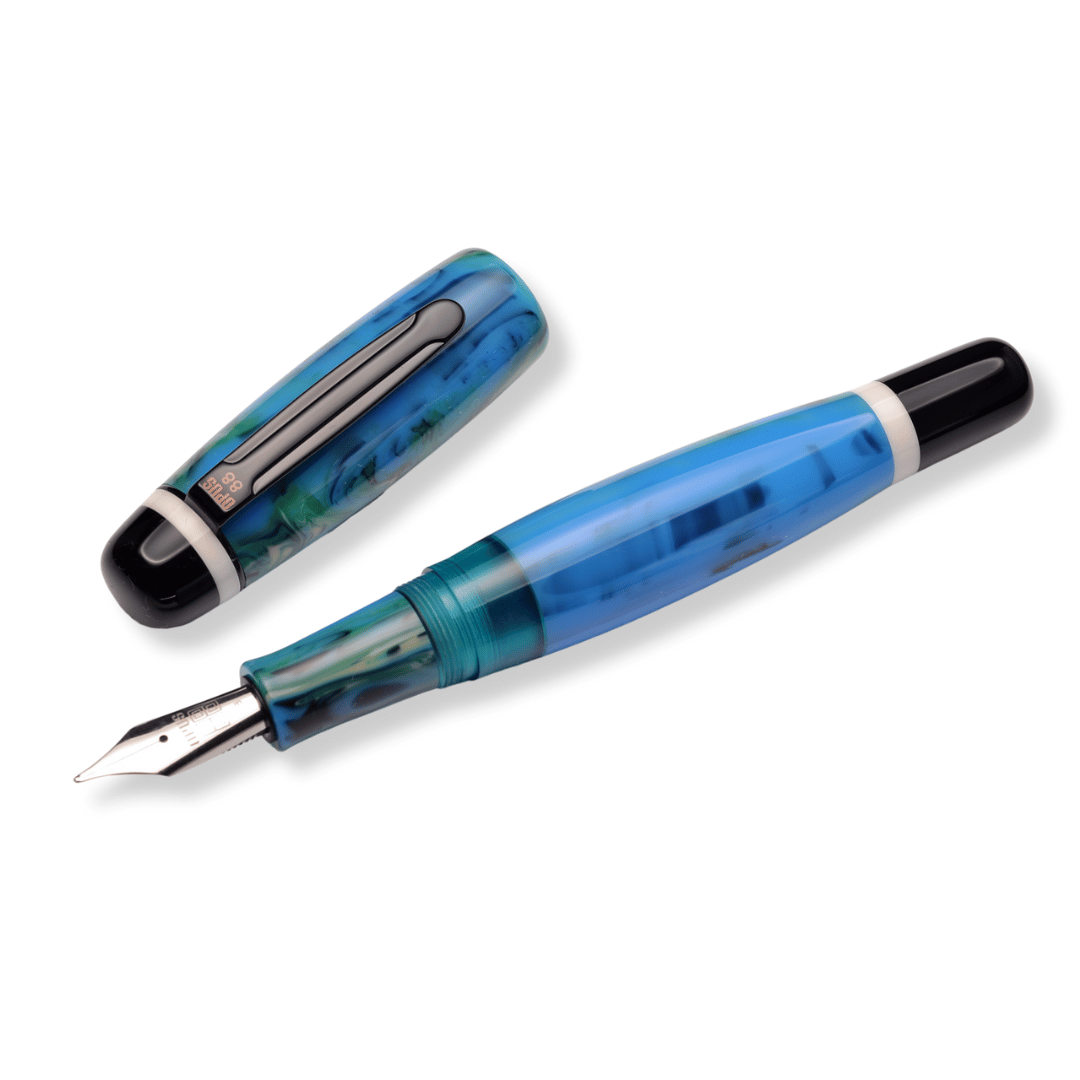 Das besondere an allen Füllhaltern von Opus 88 ist, dass sie allesamt als Eye Droper funktionieren: die Tinte wird also mithilfe einer Pipette direkt in den Korpus gefüllt. Mit dem hinteren Knauf dreht man die Dichtung zum Tintenleiter auf bzw. für den Transport wieder zu.