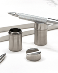 Ein Pen Rest und ein Tintenfass in einem! Der „Ink Barrel” der „Shuttle Project”-Kollektion ist aus Edelstahl und wurde von Sauerstofftanks aus Science-Fiction-Filmen inspiriert.