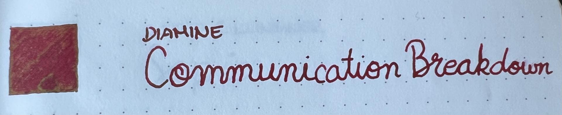Eine von Diamines limitierten Zweifarben-Tinten für Deutschland: Communication Breakdown ist eine intensive rote Tinte, die einen ganz starken grünen Sheen aufweist.