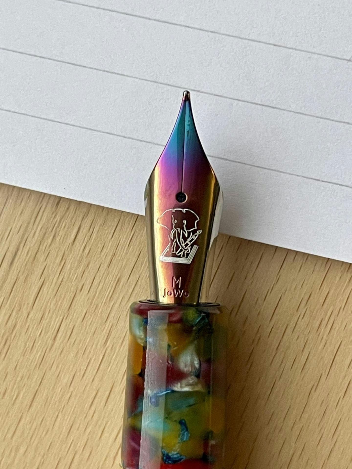 Soviel zu den technischen Details.... Wir konnten mit JOWO kooperieren und haben 5 ganz exklusiv für uns gestaltete Federn erhalten. Durch Laserbearbeitung haben diese Federn nicht nur unser Logo erhalten, sondern auch noch iridisierende Verfärbungen, feinste Schraffuren und mehr. Die schwarze Feder ist ganz exquisit, da die Laserung noch vergoldet wurde! Eine Feder für jeden, der wie wir Elefanten liebt?