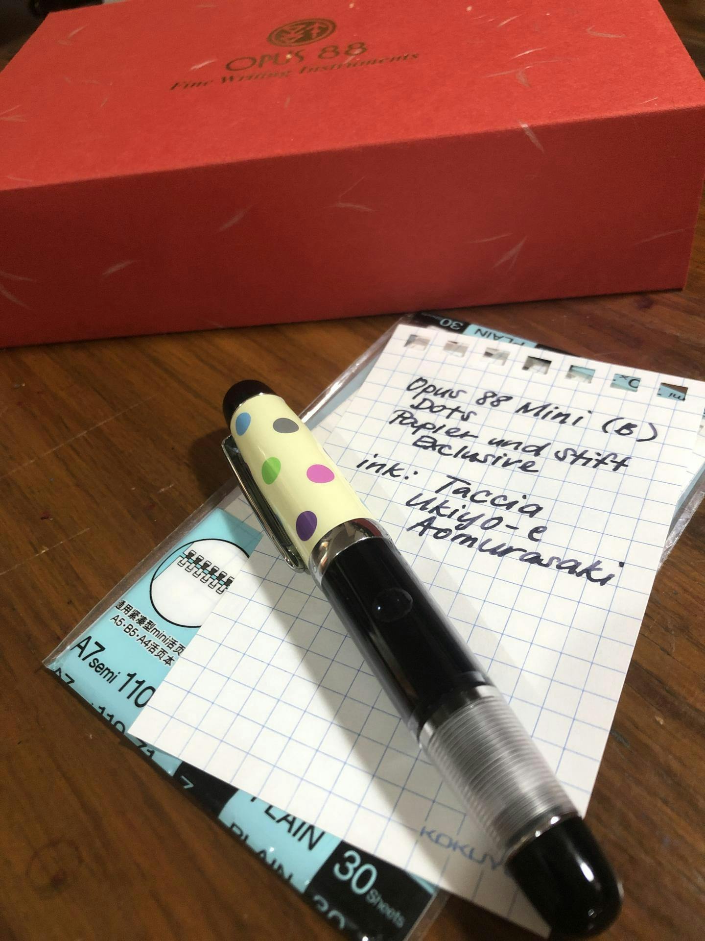Ein kleiner Taschenfüllhalter von Opus 88: mit gerade einmal 114 mm Länge geschlossen ist er klein und handlich. Aber er funktioniert vollkommen wie seine großen Brüder von Opus 88 - auch der Mini ist ein Eye Droper mit extra Transportdichtung. Diese kann ganz einfach durch den Knauf am Ende des Schaftes geöffnet und geschlossen werden.