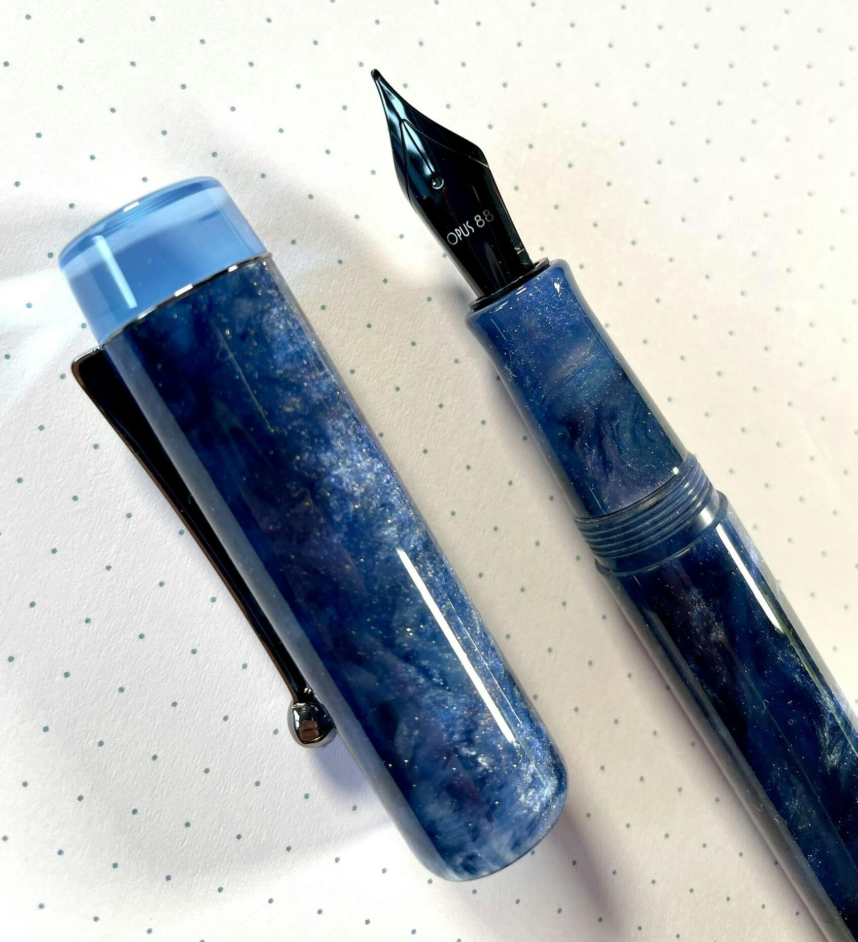 Opus 88 verfügt über eine schöne Vielfalt an farbigen, transparenten Acryl-Demonstratoren, bei denen jede Tinte in dem besonders großen Tintentank wunderbar glänzt. Die sehr schlichte Form spricht für den Purismus dieses Schreibgerätes.