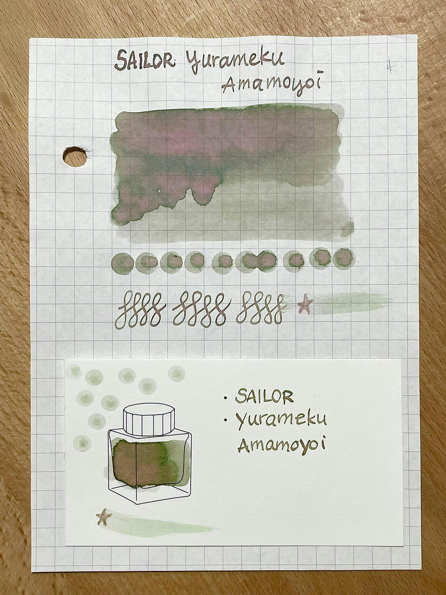 Die Farben sind allesamt durch das Farbspiel des Himmels inspiriert. Amamoyoi ist eine ockerfarbene Tinte mit grünem Shading.