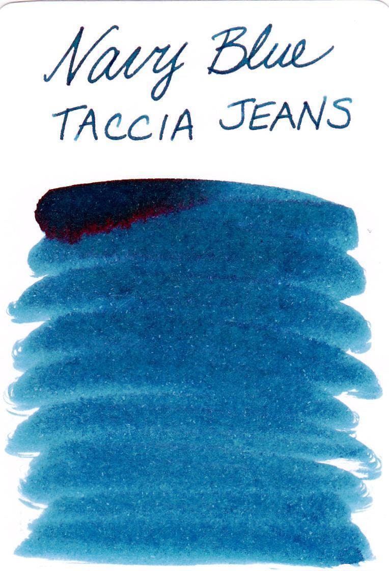 Mit den 7 Farben der Jeans-Serie spielt Taccia wie man blaue Tinten variiern kann. Von fast schwarz bis zu einem ausgewaschenen Blau ist die Bandbreite dieser Tinten. Dabei ist jede für sich sehr charakteristisch geworden.