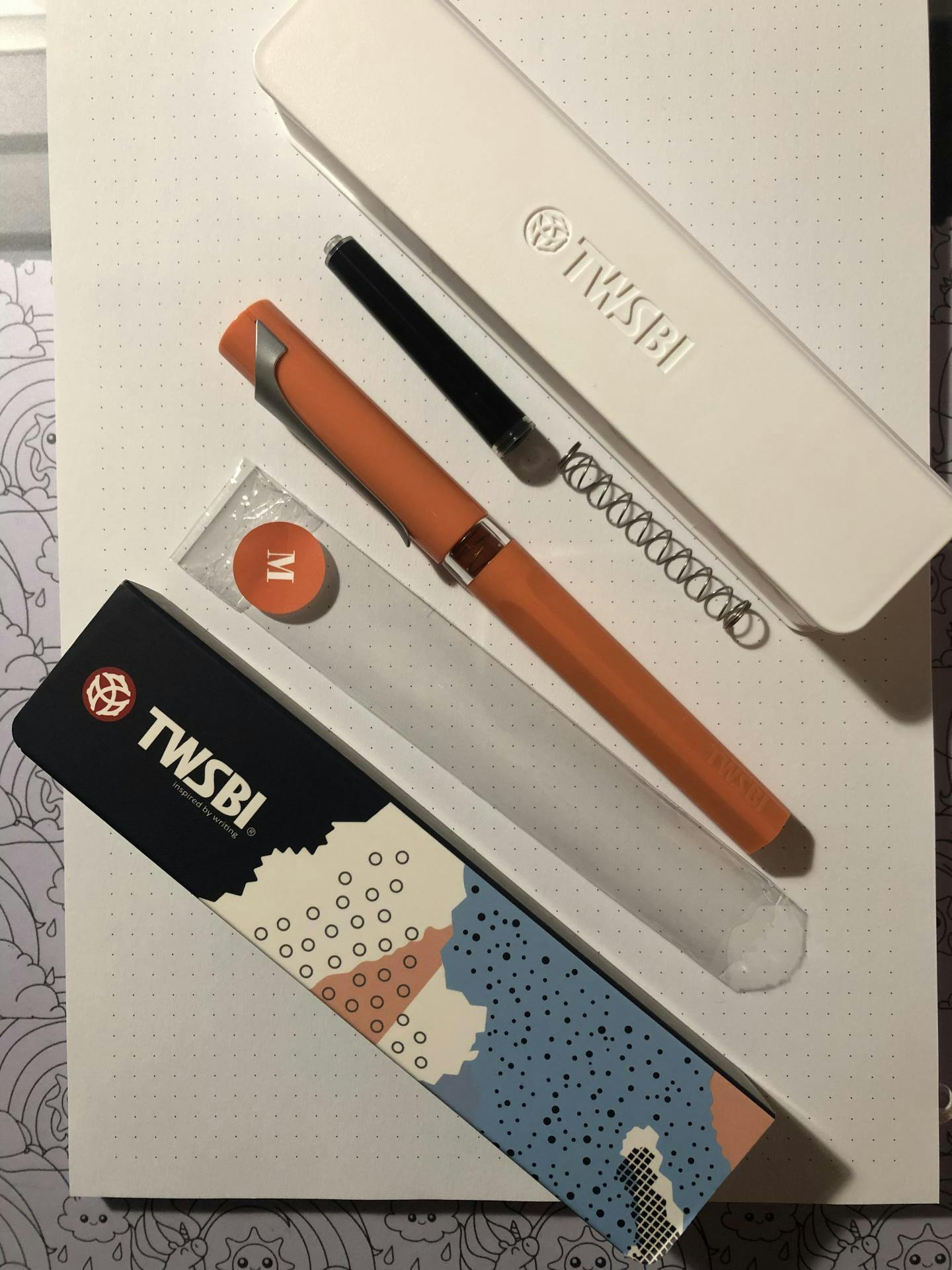 Der Patronenfüllhalter von TWSBI in leuchtendem Lachs-orange.